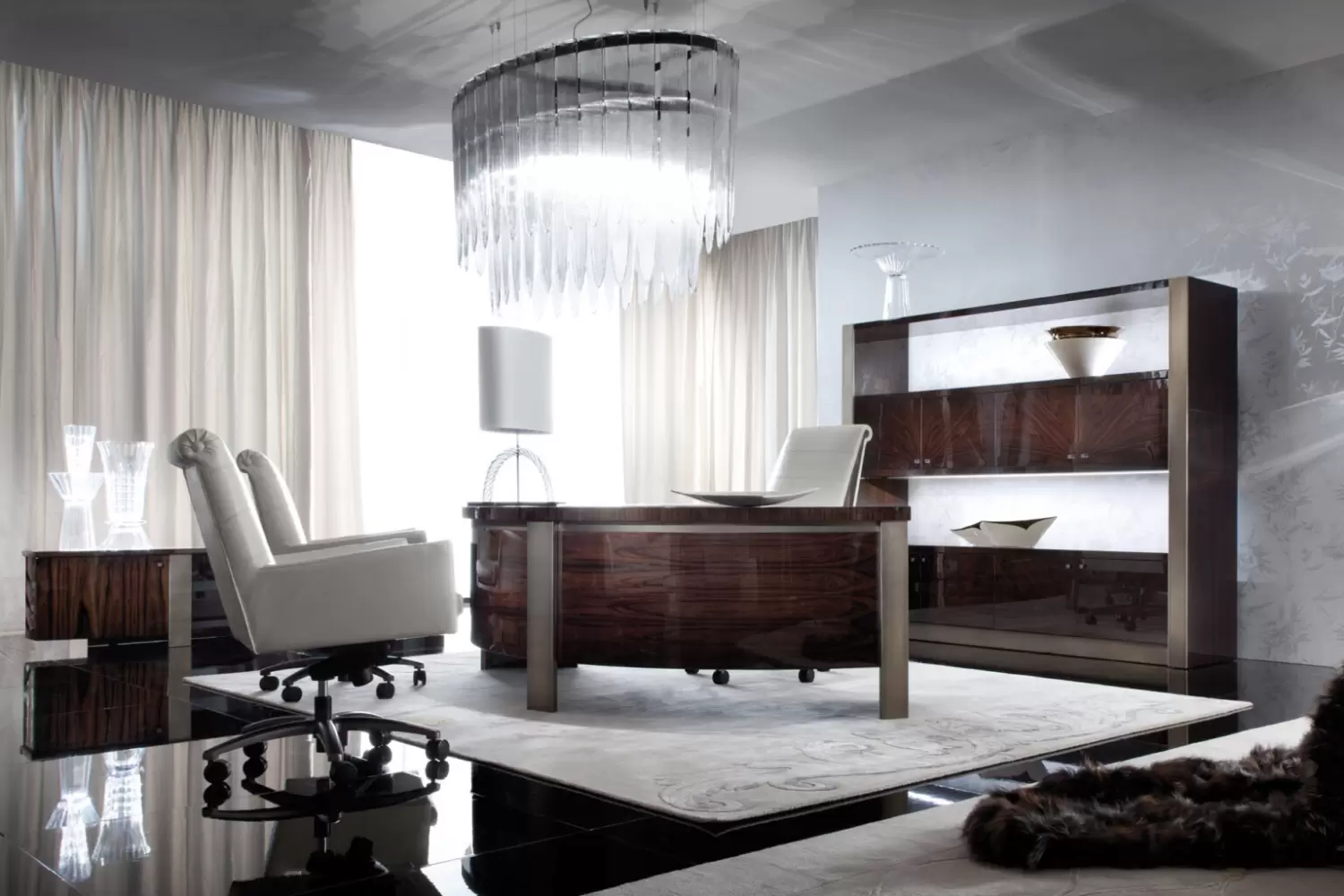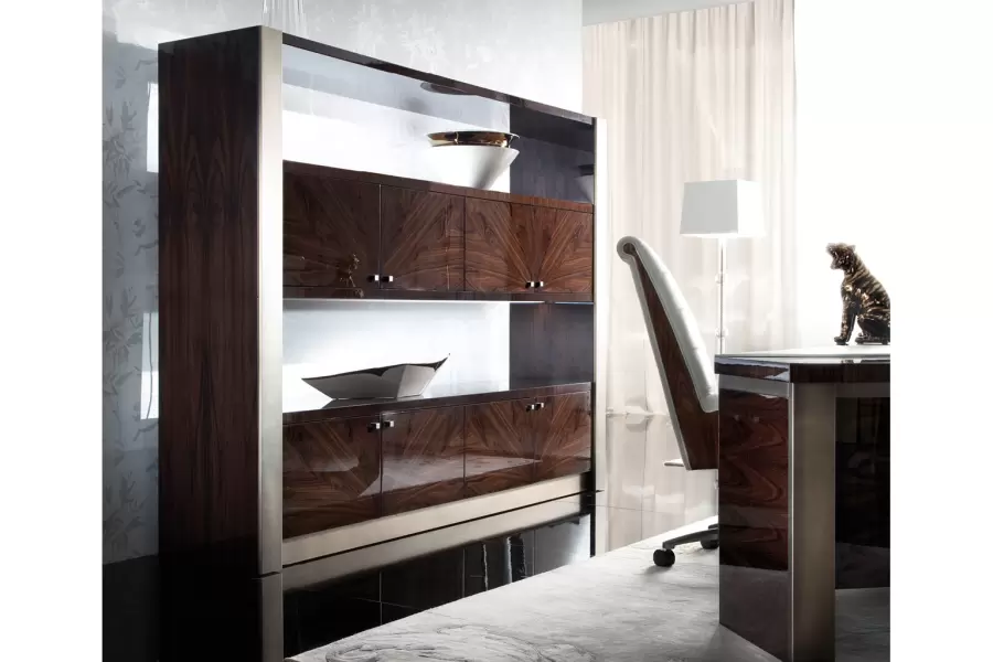 With commanding presence and architectural grace, the Coliseum Bookcase is a showcase of form, function, and finish. Crafted in Brazilian rosewood veneer with a high-gloss polyester finish, this striking piece exudes depth, richness, and modern grandeur.