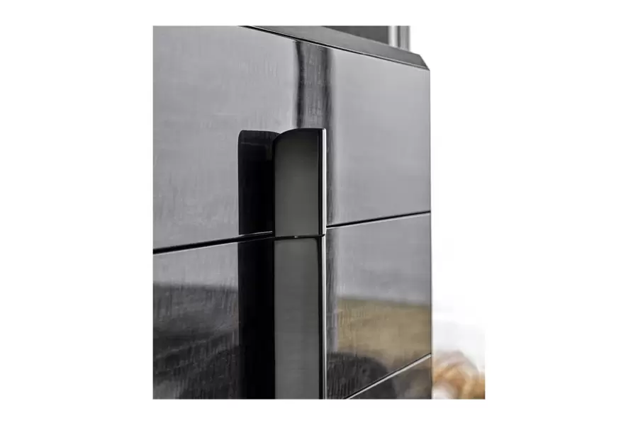 Base and handles in satin black nickel stainless steel.