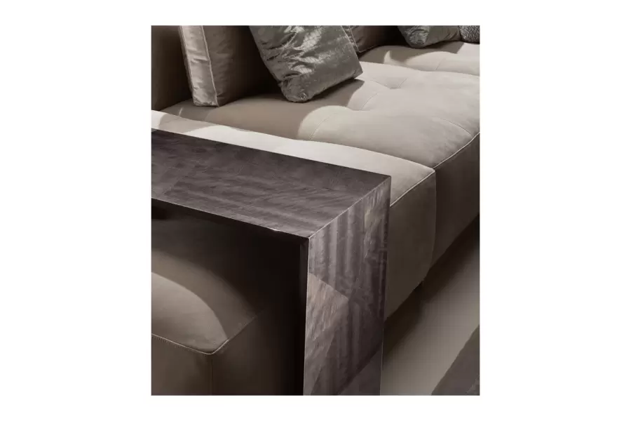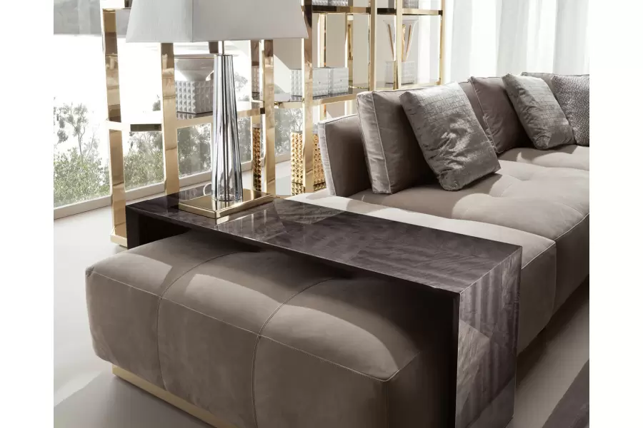 Infinity Sofa Cocktail Table Sofa cocktail table in makorè mahogany veneer with high gloss polyester finish. Measurements Art. 590/52 Size: cm 40W x 125D x 53H Size: 16″W x 49″D x 21″H