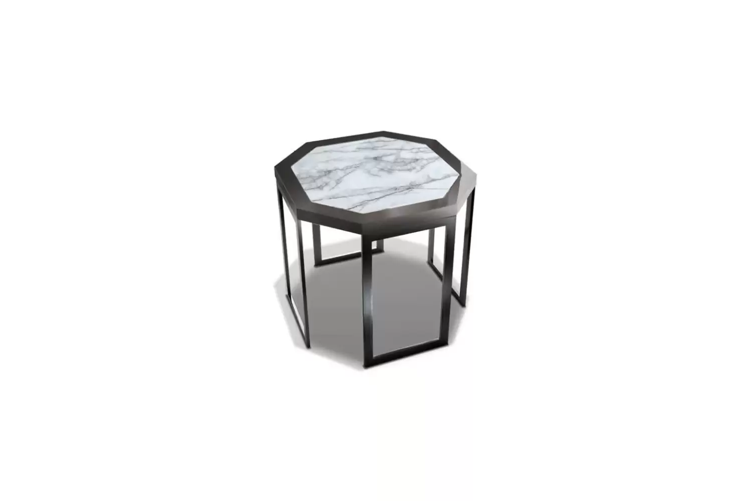 Enhance your space with our exquisite octagonal end table. The top is crafted from marble with a high gloss polyester finish, radiating elegance. Its base is expertly executed in black nickel steel, adding a modern flair to this sophisticated piece.