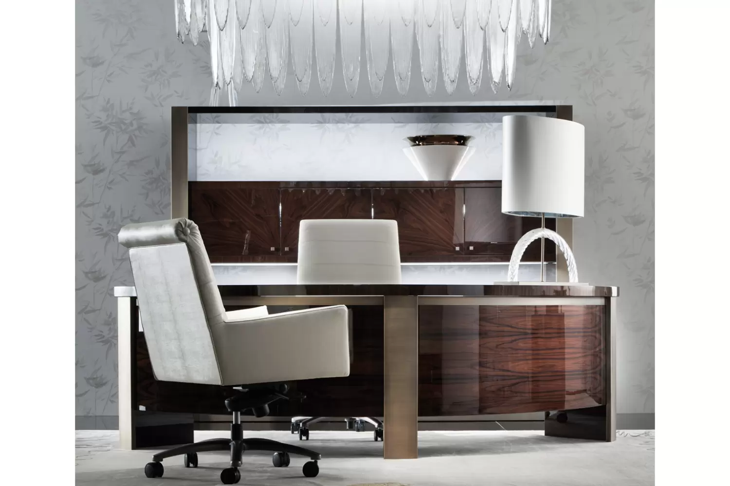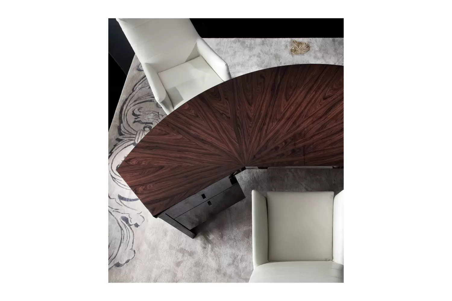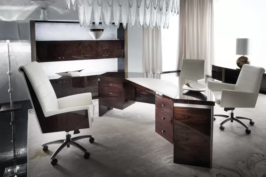 Desk in Brazilian rosewood veneer with high gloss polyester finish.