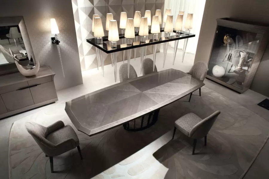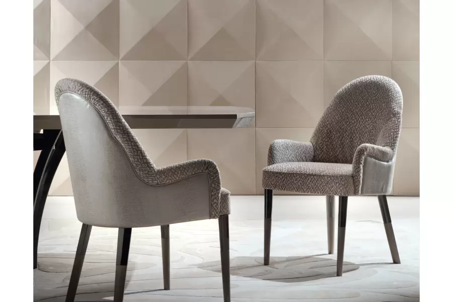 Arm chair in solid beech wood in high gloss polyester, available in first grade leather, lizard printed leather, nabuk leather, velvet, velour or suede fabric, back in silver lizard printe leather.