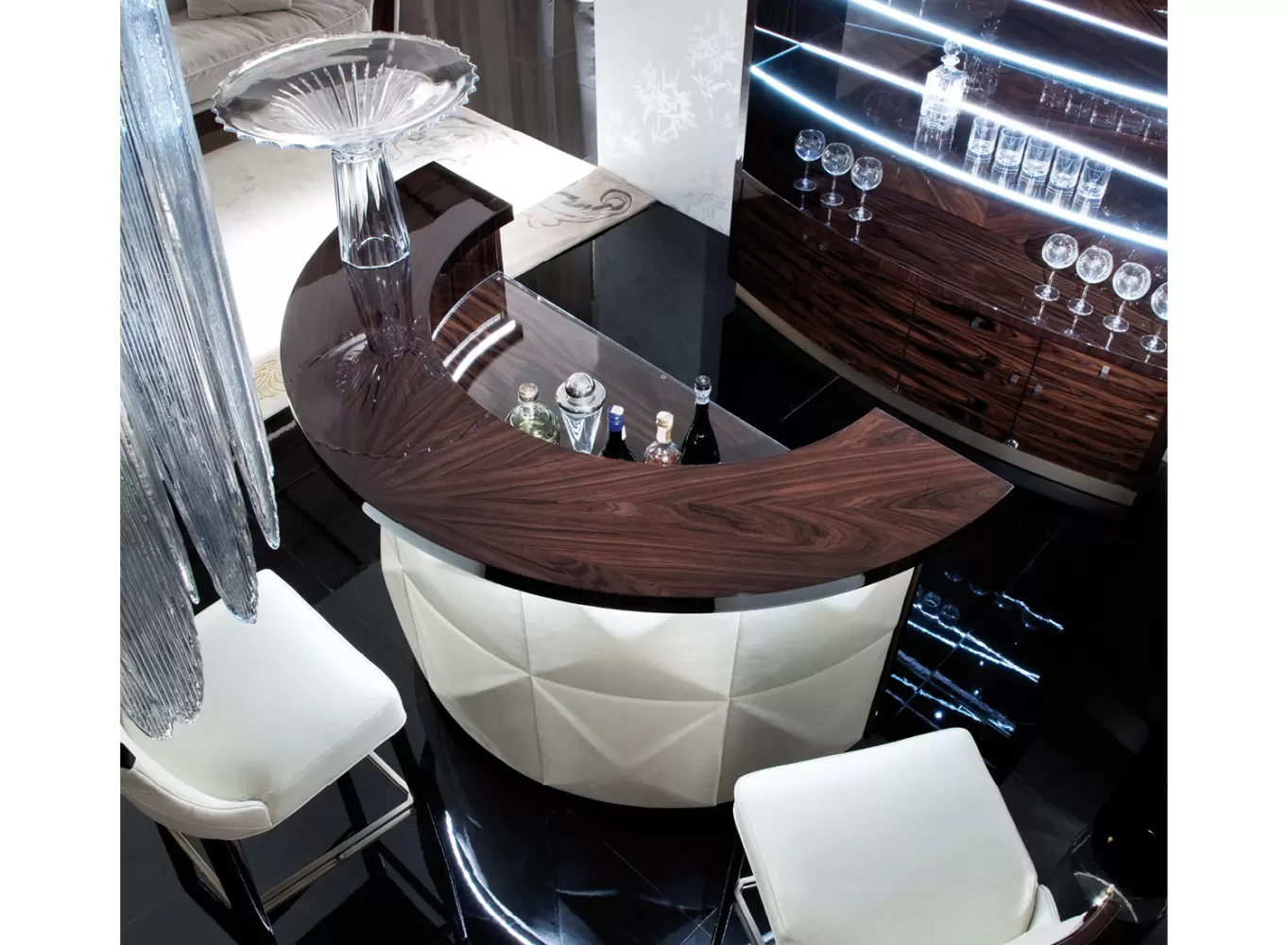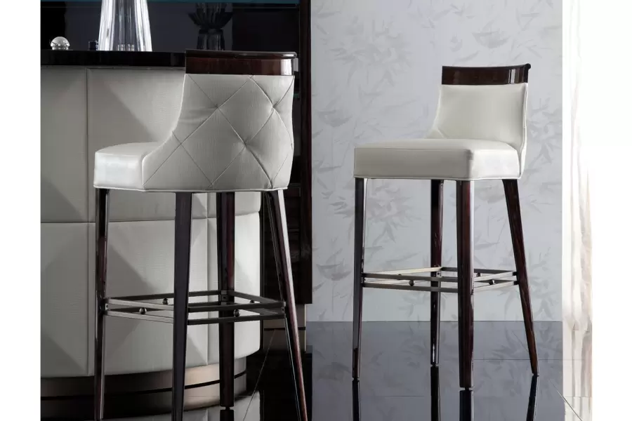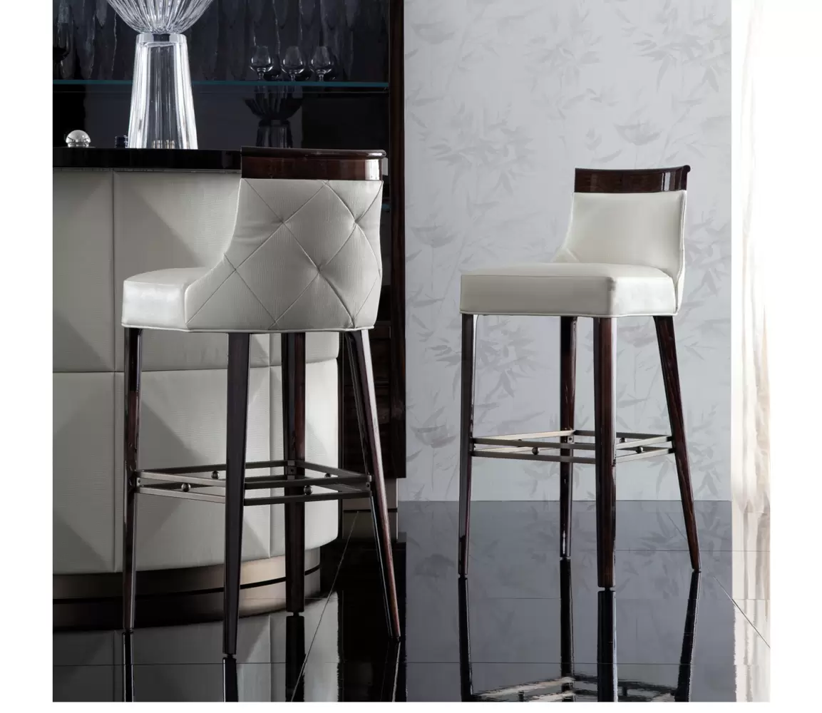 Coliseum Bar Stool Bar stool in high gloss polyester, in Brazilian rosewood colour with seat and back. Details bronzed stainless steel. Measurements Art. 180/95 Size: cm 50W x 55D x 110H Size: 19’’½W x 21″½D x 43’’½H