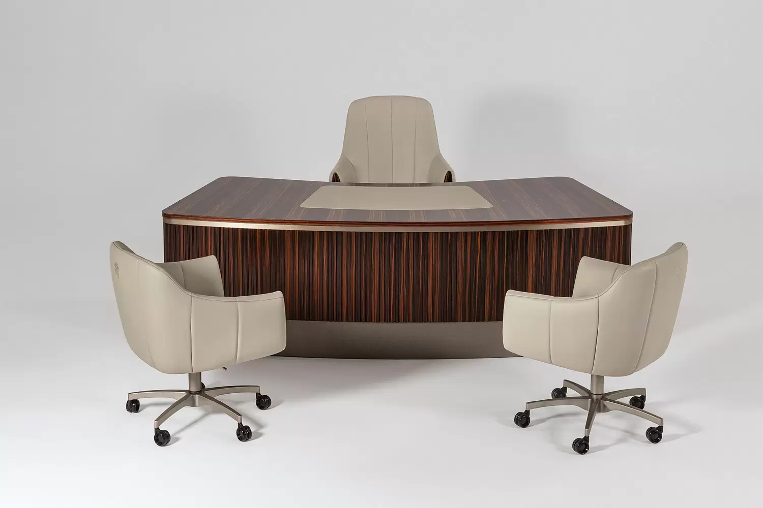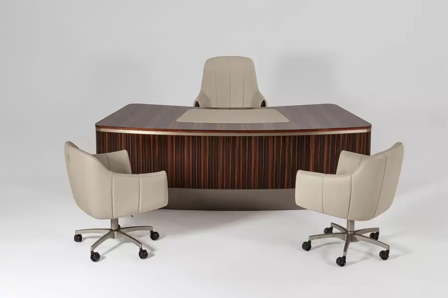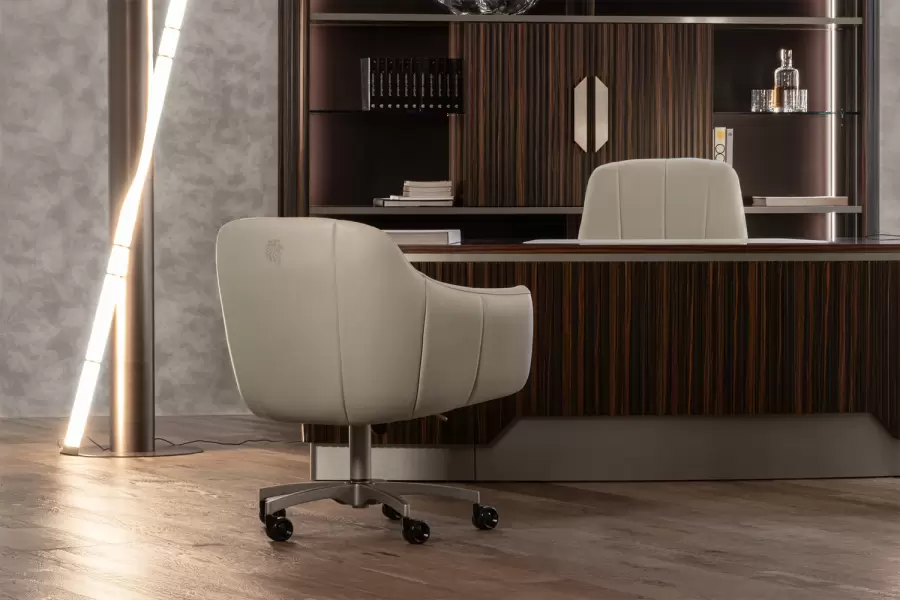 A seamless extension of executive sophistication, the Luxor Guest Office Chair brings comfort and presence to any refined office setting. Upholstered in your choice of first-grade leather, nubuk leather, lizard-printed leather, or elegant fabric, it offers tactile richness and visual harmony with the Luxor collection.