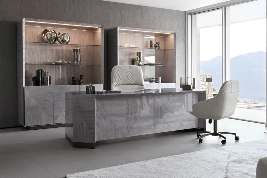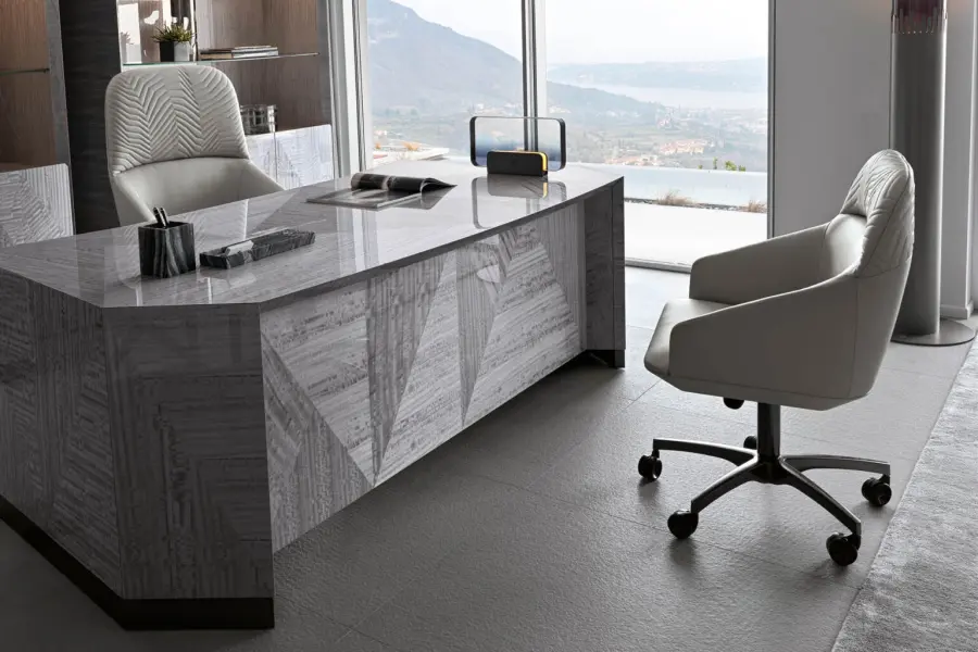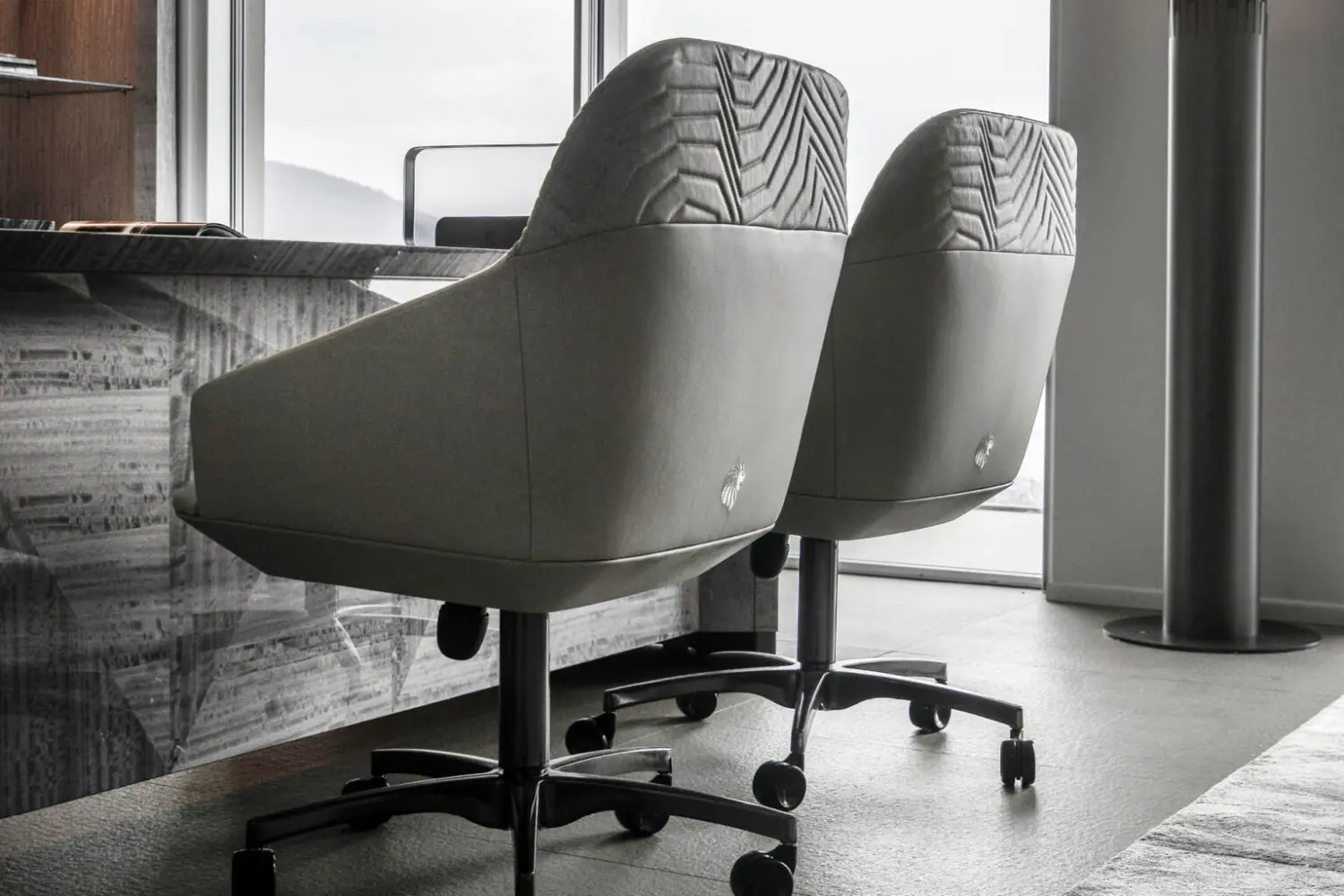 Welcome your guests in absolute comfort and style with our guest chair. Available in first-grade leather, nubuck leather, lizard printed leather, velvet, or suede fabric, this chair offers a modern design with a quilted back.