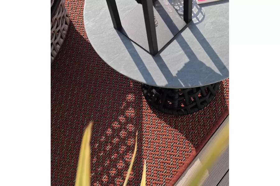 Dune Outdoor Carpet Outdoor carpet in 100% polypropylene embossed woven. Measurements Art. Dune outdoor carpet Size: cm. 400W x 300D Size: 157″½W x 118″D