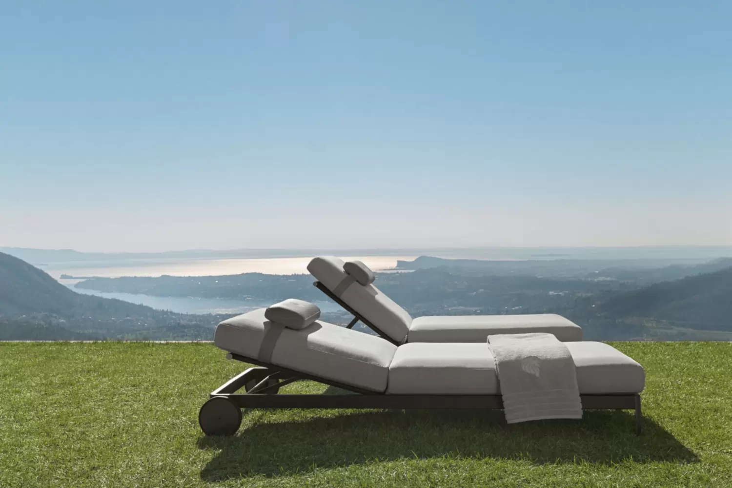 Outdoor sunbed available in special treated fabric or first grade leather.