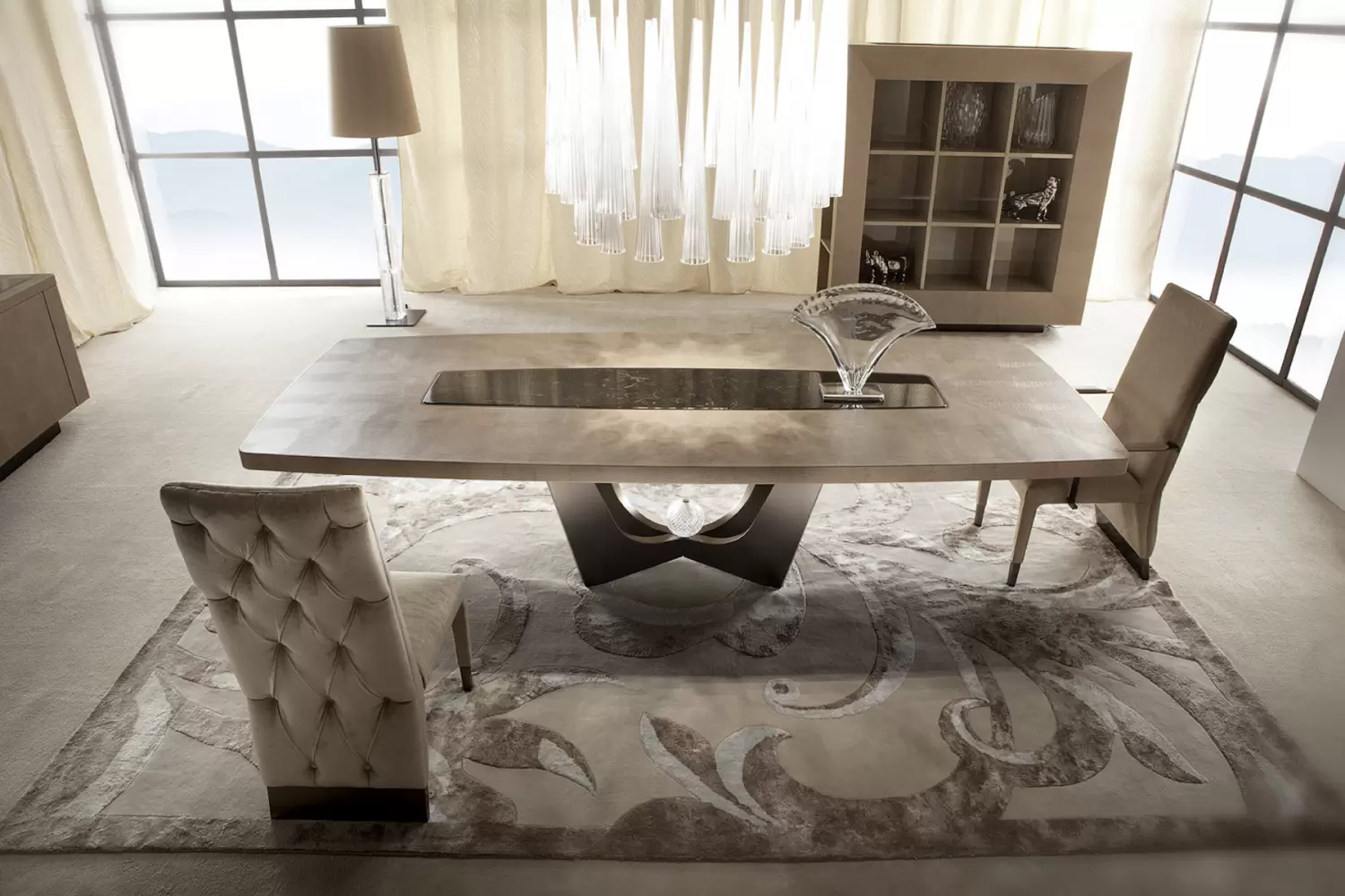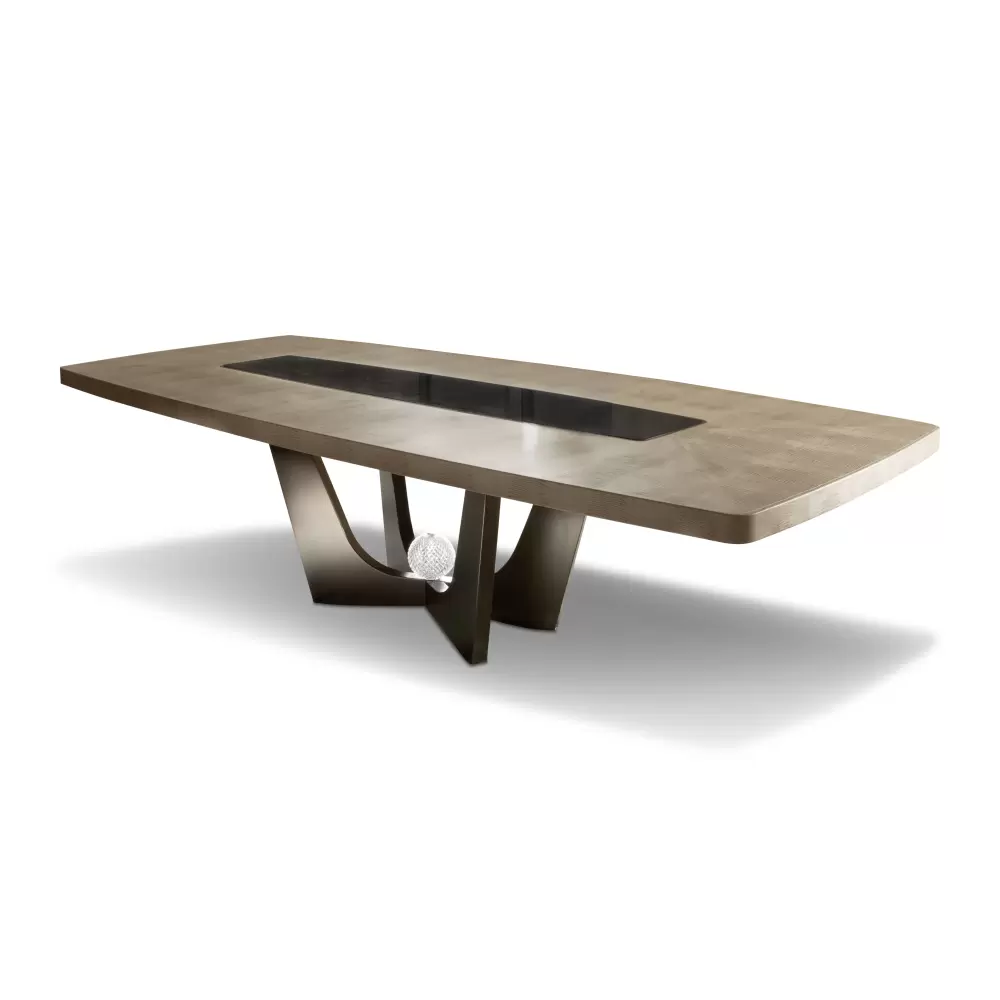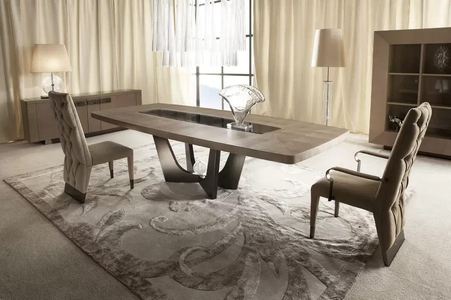 Rectangular table in armadillo printed leather with dark emperador marble