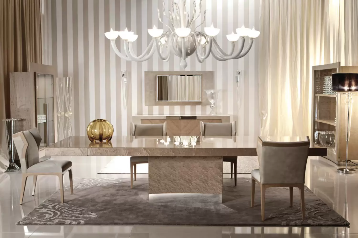 Supported by a sleek base in chrome stainless steel, this table is a fusion of timeless elegance and modern sophistication.