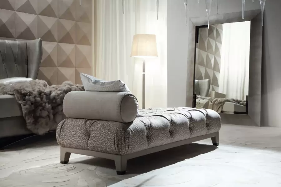 Experience ultimate comfort and elegance with the Masami chaise longue. Its polyurethane foam seat wrapped in down feather ensures plush comfort.