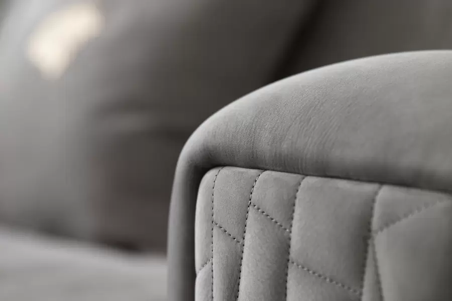 foam wrapped in down feather. The quilted armrests add a touch of sophistication.
