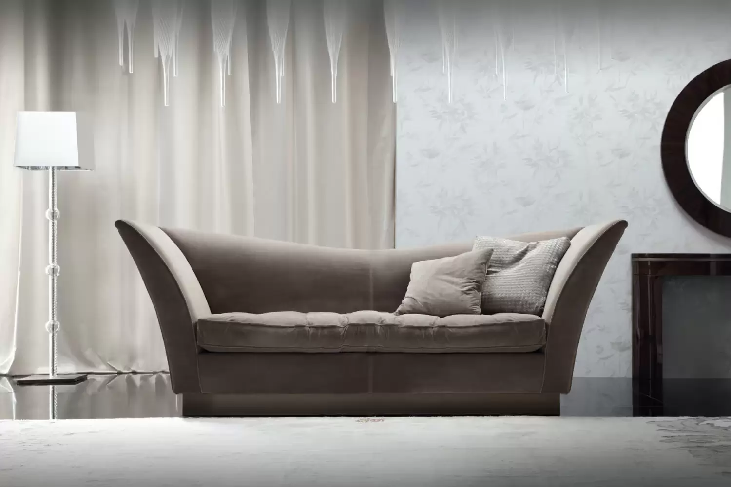 Indulge in comfort and style with our luxurious Sofa. Featuring one seat cushion crafted from polyurethane foam wrapped in down, accompanied by two plush pillows. Supported by a bronzed stainless steel base for a touch of modern elegance.