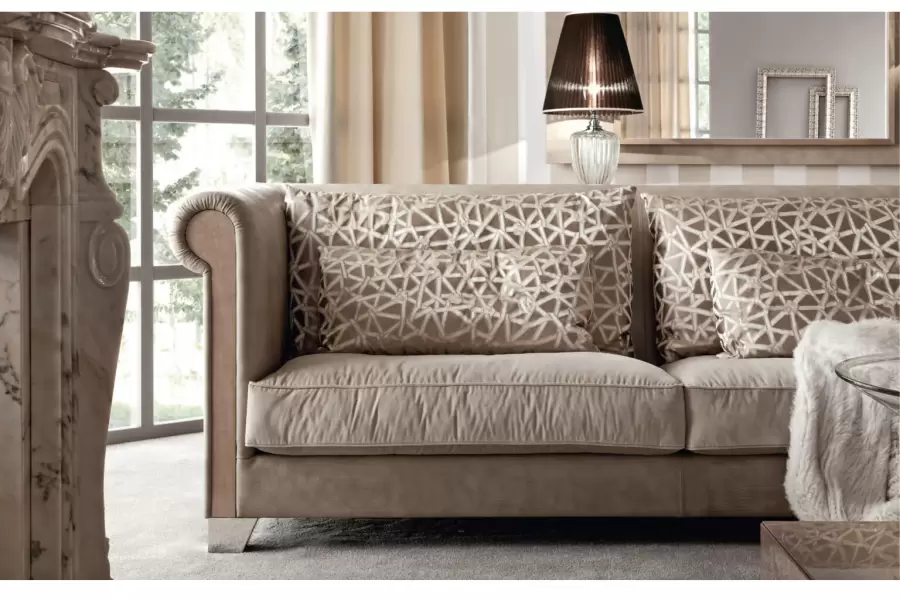 Featuring two large and two small pillows, this sofa combines comfort and style effortlessly.
