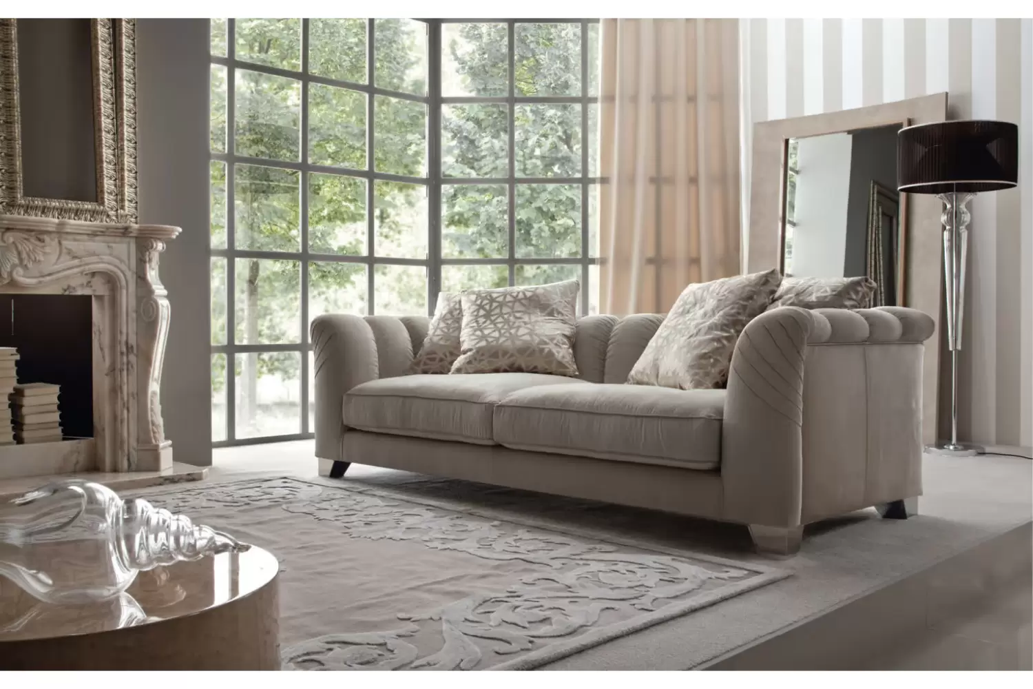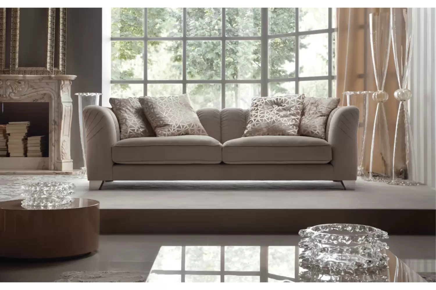 Introducing our Fixed Sofa, designed for both comfort and style. This elegant piece features four large pillows for plush support and relaxation
