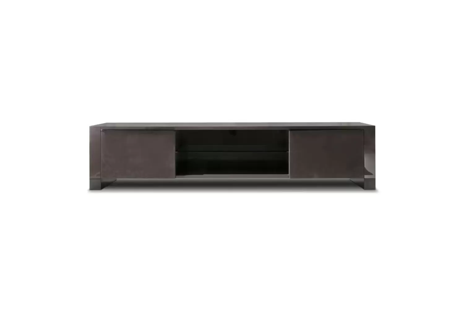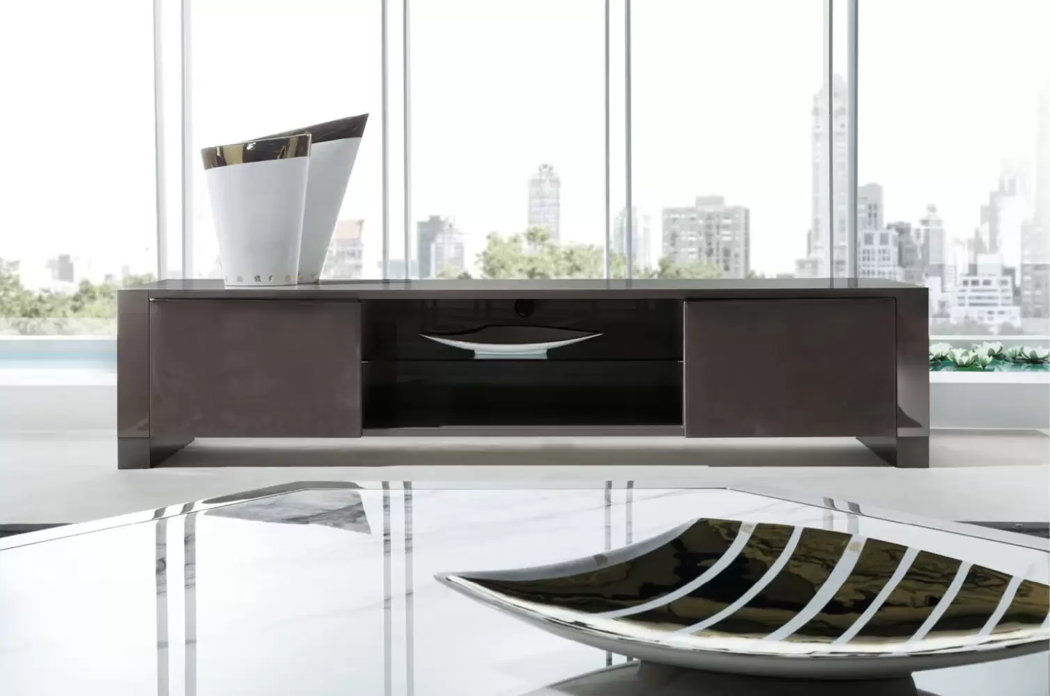 Upgrade your entertainment area with our stylish TV unit bench, featuring a high gloss polyester grey lacquer base that exudes modern sophistication.