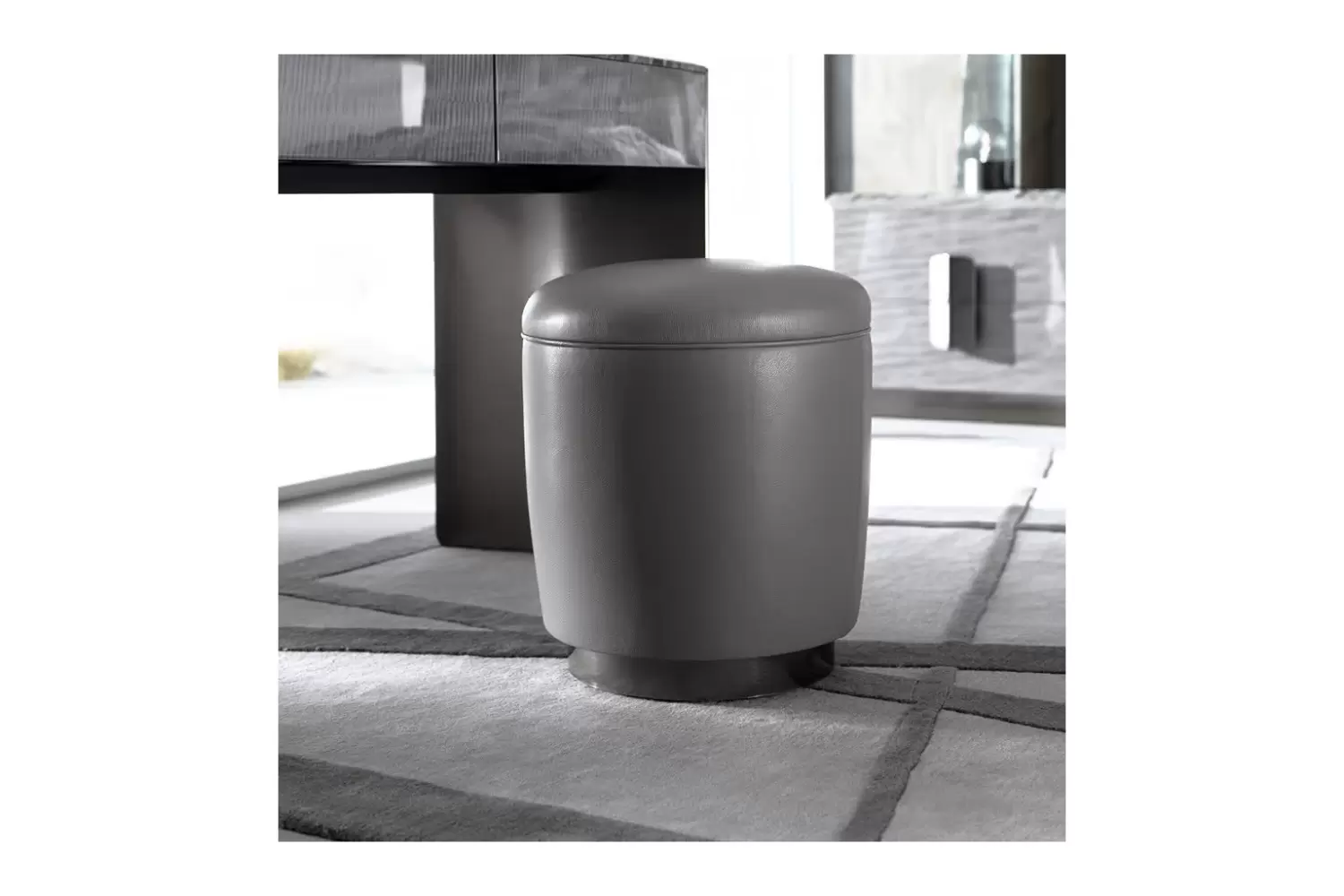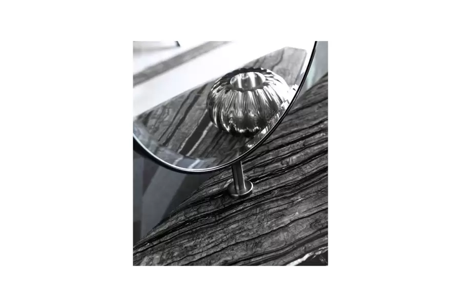 Curved legs in satin black nickel stainless steel with lasered Giorgio Collection logo.